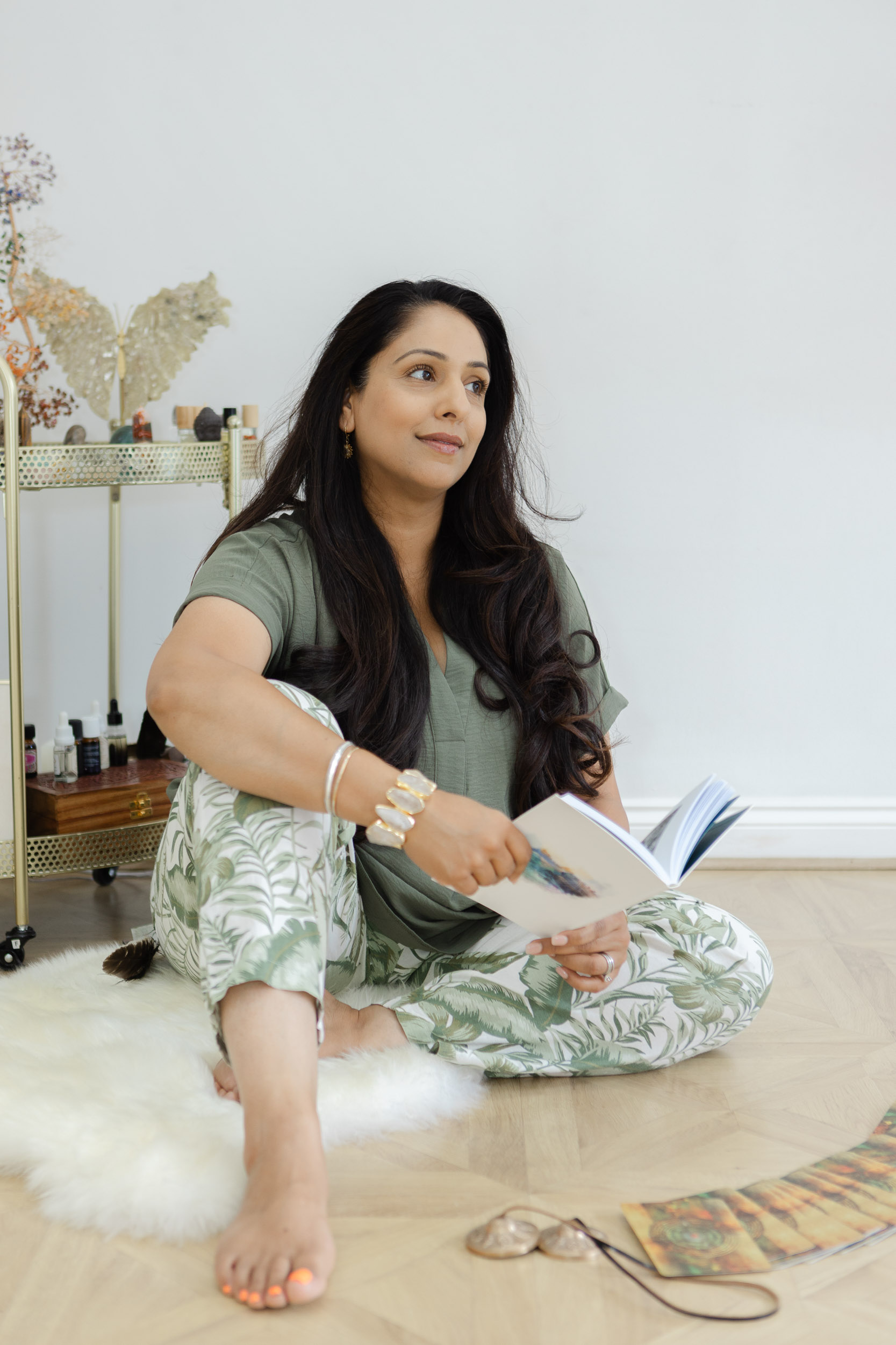 Our content creator, Priya, will capture beautiful, natural movement footage — perfect for Instagram Reels, TikTok, and website banners. Think candle lighting, sipping tea, writing in your journal, or using your wellness tools.